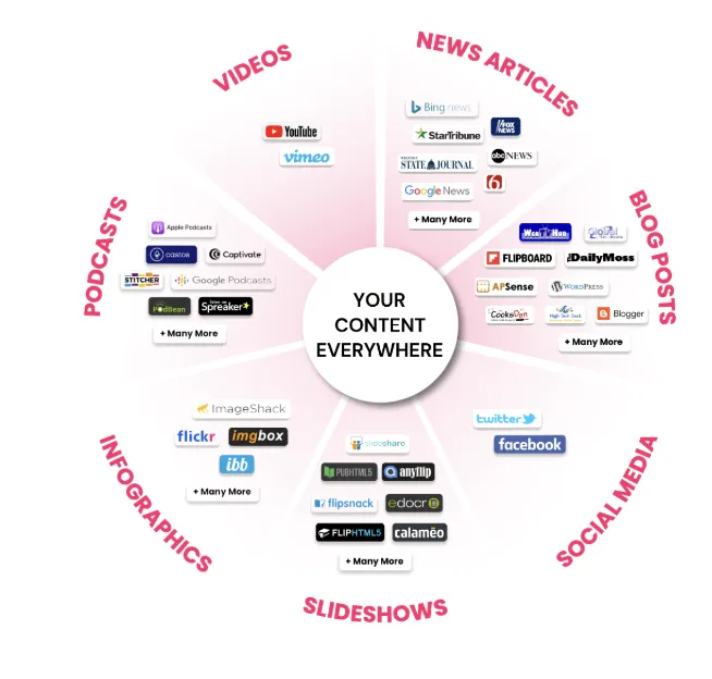 Simply submit your information and let our specialized team take care of everything. Our experienced content creators, distribution specialists, and technical experts will handle the entire process—from crafting your newsworthy content in six formats (video, article, blog, slideshow, infographic, and podcast) to distributing it across 300+ authority media sites. You'll receive comprehensive reports tracking your visibility success
